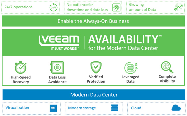 Veeam bridges this gap by providing customers a new kind of solution-Availability for the Modern Data Center, which delivers RTPO of < 15 minutes for ALL applications and data.
